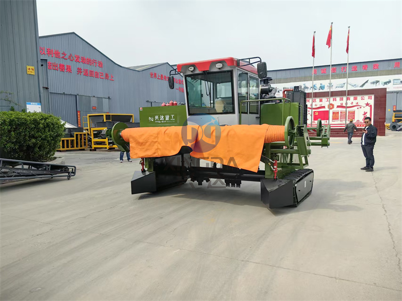 液壓履帶覆膜翻拋機是一種利用液壓系統(tǒng)驅(qū)動履帶行走,同時進行覆膜和翻拋作業(yè)的農(nóng)業(yè)機械。它通過履帶的運動帶動機器前進,液壓系統(tǒng)提供動力,使翻拋裝置能夠有效地將土壤或有機物料翻轉(zhuǎn)并覆蓋上一層薄膜。這種設(shè)備廣泛應用于農(nóng)田管理、堆肥處理以及土壤改良等領(lǐng)域。其主要優(yōu)點包括操作簡便、工作效率高、能有效防止水分蒸發(fā)和雜草生長,同時還能促進有機物的分解和養(yǎng)分釋放。液壓履帶覆膜翻拋機是一種農(nóng)業(yè)機械,主要用于有機肥生產(chǎn)過程中的物料翻拋和覆蓋薄膜。以下是液壓履帶覆膜翻拋機的結(jié)構(gòu)介紹: